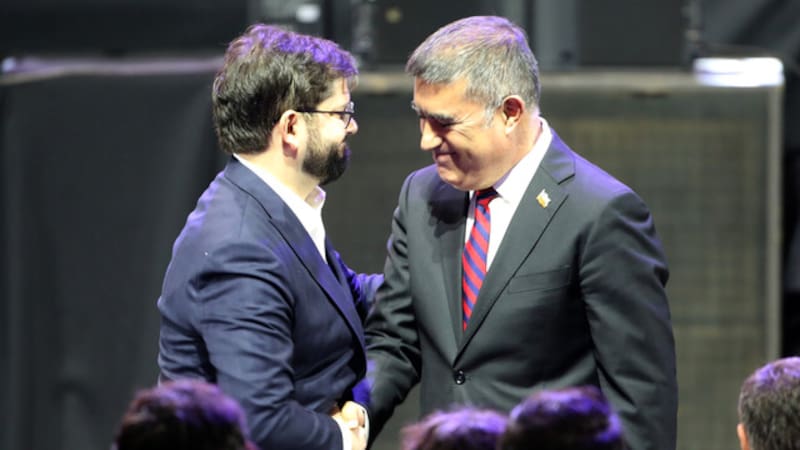 Al bajar del escenario se dio la mano con el Presidente Boric, al momento que este se hacía paso para dar su discurso. Fue ahí donde, si bien no hizo mención directa al conflicto, sí esbozó que las celebraciones son en todo Chile Y mencionó que “independiente del lugar donde esté, las convicciones que uno tenga, el lugar donde han nacido, hay algo que nos une, y es esta bandera”, apuntando a una de Chile.