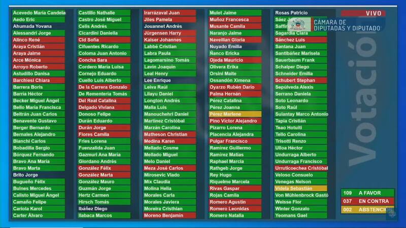 En RN se desmarcaron los diputados Jorge Durán, Sofía Cid, Camila Flores y Catalina del Real. En la UDI, el único voto que no estuvo por aprobar fue el de Marlene Pérez, quien se abstuvo. En Evópoli -aunque sin estar en las filas de esa tienda, pero sí en su comité-, no concurrió con su voto el diputado Christian Matheson.