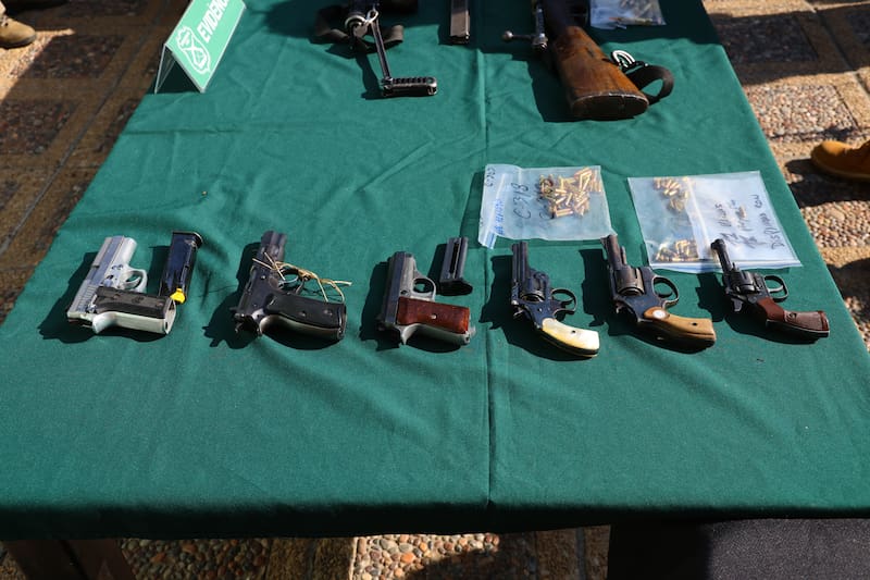 Fue en la radio de la Villa Francia donde se encontró el mayor número de armas. En el listado se cuentan: una pistola marca Taurus de 9 milímetros, una carabina calibre 7,62; una subametralladora con un cargador balístico calibre 9 x 19 mm; una pistola, marca “Tanfoglio” calibre 22; un revólver marca “Amadeo Rossi” calibre .38 especial; una escopeta con cañones yuxtapuestos marca “Lambert”; una escopeta calibre 12; una escopeta de fabricación artesanal; un conjunto de partes y piezas de escopeta, consistente en un cañón y dos empuñaduras; un tubo de disparo sin marca visible; una pistola marca “CZ” calibre 9 x 19; un revólver calibre.22 corto; un revólver calibre por corroborar y una escopeta de un cañón marca “Maverick”.
