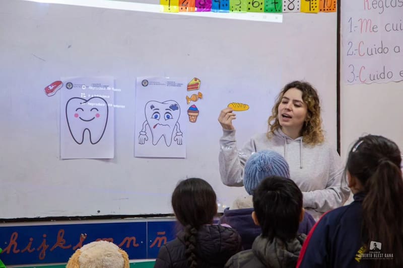 Una de las metas alfabetizadoras de “Sonrisas sanas, futuros brillantes” es mostrarles a los adultos las consecuencias en un niño que no tiene la boca sana. La existencia de enfermedades orales conlleva ausentismo escolar y también dificultad para el aprendizaje: “Si a un chico le falta la pieza anterior es difícil que pueda pronunciar la letra D, por ejemplo, y ya tiene un problema de lenguaje”, afirma Ismael Henríquez.