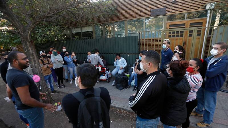 Ciudadanos venezolanos acampan fuera de consulado en Santiago esperando gestiones para regresar a su país