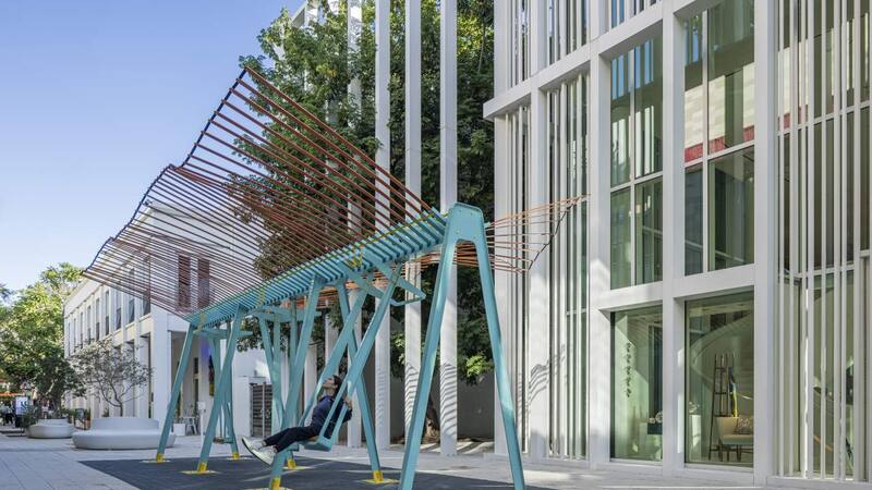 En el Miami Design District de Estados Unidos, un vecindario conocido por su elegante arquitectura moderna que atrae a fanáticos de las tiendas de lujo y de las galerías de arte, se exhibe Conscious Actions, una obra elaborada por cuatro arquitectos chilenos y que ganó la Comisión del Distrito de este año. El proyecto consiste en una serie de dispositivos interactivos, arquitectónicos e inspirados en el patio de un recreo escolar, pero que recuerda el impacto directo que cada acción tiene en el entorno. La particularidad del proyecto es que no solo se trata de arquitectura, sino que se activa mediante fuerzas físicas y naturales.