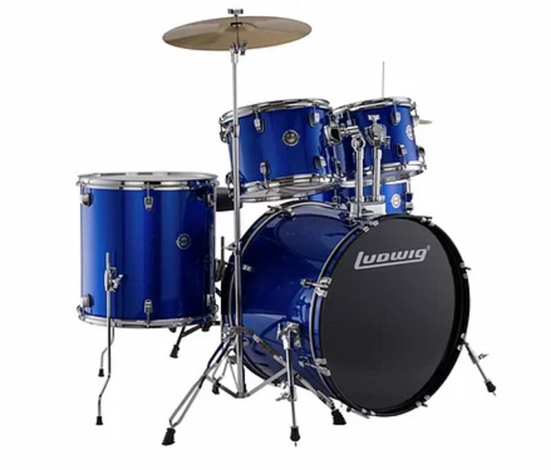 Otra opción, similar a la anterior, es el clásico modelo Accent de Ludwig, una marca de tradición en el mundo de las baterías. En este caso, el pack incluye atriles, un crash, hi hat, y sillín, algo poco usual.