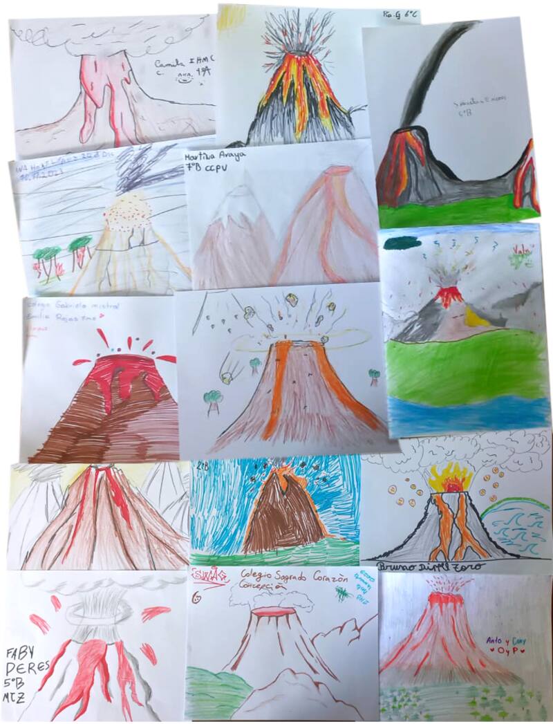 Inspirados por el fervor volcánico que les dejó cada stand, además, los niños y niñas de todas las edades ilustraron más de 150 volcanes con toda la libertad que les dio la simpleza de un plumón y la hoja de block en blanco. En dos días se completó un mural de pie a suelo con la imaginación de quienes se aventuraron a darle color a la fiesta de volcanes que por primera vez visitaba la ciudad penquista.