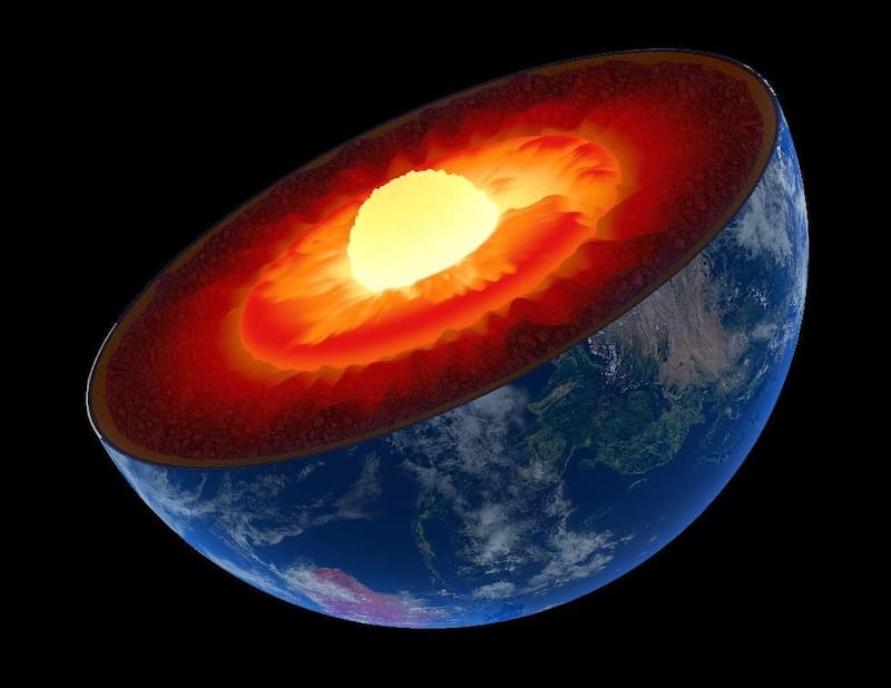 El núcleo interno de la Tierra alguna vez fue líquido, pero con el tiempo se ha vuelto sólido. A medida que la Tierra se enfría gradualmente, el núcleo interno se expande hacia afuera y el líquido rico en hierro que lo rodea se “congela”. Dicho esto, todavía hace mucho calor, al menos 5000 Kelvin (K) (4726,85 °C).