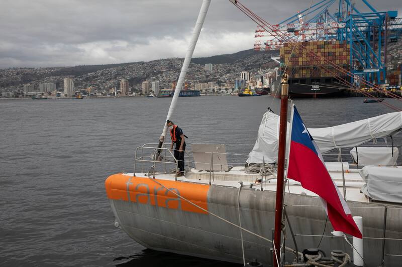 El velero Tara zarpó desde el puerto de Lorient, en Francia, a finales del año pasado y su primera parada fue Punta Arenas. Desde allí, su laboratorio a bordo ha estado recogiendo distintas muestras para entender las características fisicoquímicas de los microorganismos que habitan el océano.