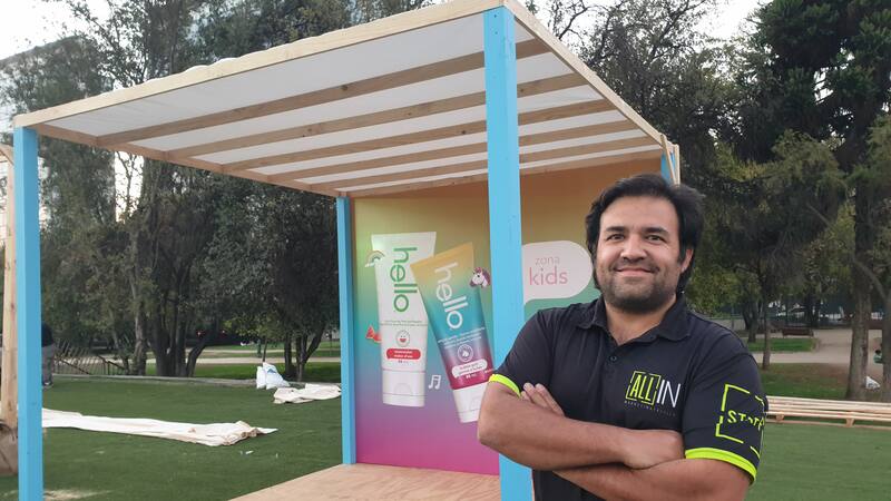 Fundada en 2014, en sus primeros cuatro años de funcionamiento All In trabajó subcontratando los servicios de distintas áreas relacionadas con la ejecución de sus productos, mientras que Nicolás Cortés estaba a cargo de la idea y la logística de cada proyecto. En 2018, junto a su entonces socia Daniela Jiménez invirtieron en infraestructura, insumos y maquinaria, contrataron a sus propios trabajadores y consiguieron su completa autonomía. Hoy tienen un taller en Rancagua en el que se realiza todo el proceso, desde la confección de las estructuras de los stands con los detalles que cada cliente pide, hasta el control de los más mínimos detalles de cada evento: si habrá recursos audiovisuales, lugar para catering o para anfitrionas; si el módulo estará ubicado en una esquina del recinto o en medio, junto a otros stands. Desde ese centro neurálgico se mueven a las distintas regiones del país. Su servicio, además, incluye los permisos para los montajes y las certificaciones eléctricas.