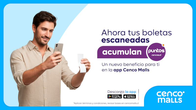 Cenco Malls incorporó en su App una nueva funcionalidad que permite a los clientes obtener Puntos Cencosud y acceder a beneficios al escanear sus boletas de compras presenciales, los que luego pueden ser canjeados por productos, servicios y experiencias dentro del ecosistema Cencosud.