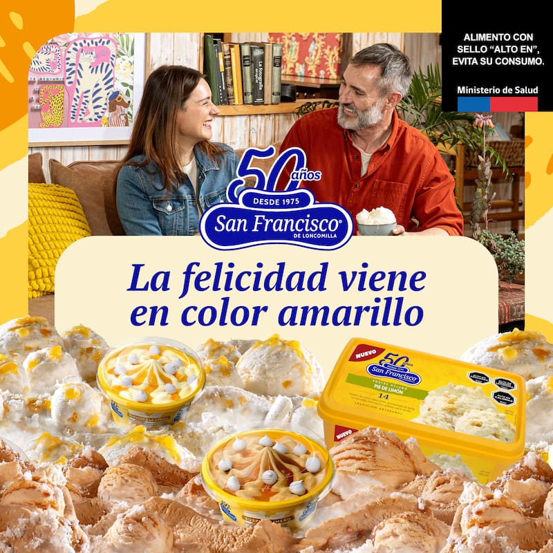 San Francisco de Loncomilla está de celebración al cumplir 50 años de historia, un hito que marca medio siglo llevando a la mesa de los chilenos no solo postres helados, sino también momentos de felicidad, calidad y sabor inigualable. Para celebrar este aniversario tan significativo, San Francisco ha presentado su campaña “La felicidad viene en color amarillo”, con una serie de emocionantes sorpresas y nuevos productos.