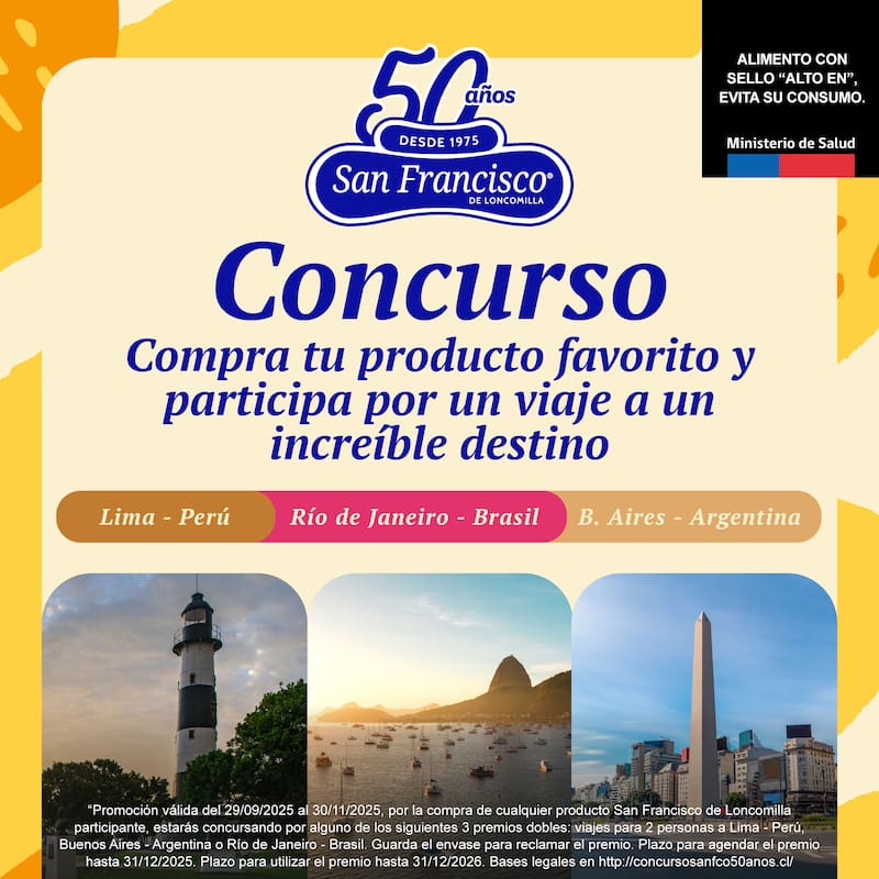 Participar es muy sencillo y cualquier compra puede ser la llave: solo se debe comprar un producto San Francisco, visitar la página www.concursosanfco50anos.cl y registrar los datos solicitados. Es una oportunidad única para celebrar estos 50 años de historia con una aventura más allá de las fronteras chilenas.
