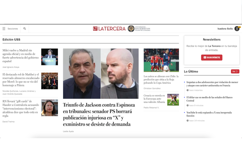 Además, si quieres recibir lo mejor de La Tercera directamente en tu correo, puedes registrarte en los diversos newsletters que ofrece el diario.