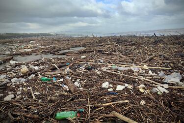 Registro da cuenta de grave contaminación con residuos no orgánicos como plásticos, arrastrados aguas abajo por el caudal del río. Más del 70% de la demanda de agua potable en la Región Metropolitana depende de este cuerpo de agua.