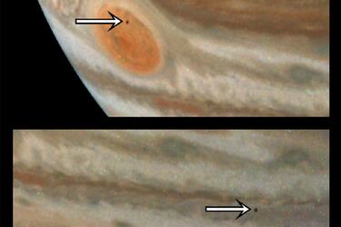 La misión Juno de la agencia espacial tomó dos intrigantes imágenes del objeto orbitando el planeta.