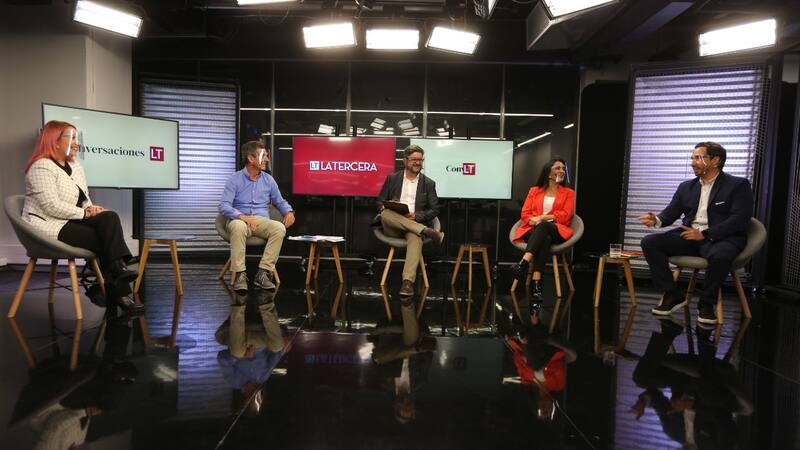 Juan Andrés Quezada, periodista de La Tercera Domingo, debate con los cuatro candidatos a la alcadía de Las Condes Nicolás Preuss (DC), Gonzalo de la Carrera (Republicanos), Marcela Cubillos H. (Acción Humanista) y Daniela Peñaloza (UDI).