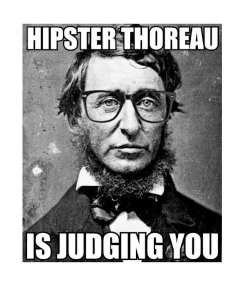 El autor de Walden odiaba la burguesía, aunque era parte de ella. Luego de graduarse de Harvard intentó trabajar como profesor (lo echaron a las dos semanas), y desde entonces vivió a costa de sus padres por mucho tiempo. Eventualmente, además, recibiría la fábrica de lápices familiar. Por aspectos como ese Thoreau sería criticado: lo acusaban de ser un farsante que imitaba la pobreza (durante su periodo en Walden, aseguran algunos de sus vecinos, de vez en cuando iba a comer y lavar ropa donde sus padres). Como los hipsters y millennials, quienes, más que nada, prefieren viajar, caminar y evadir esa cárcel llamada oficina y pasar largas horas en cafés; Thoreau también caminaba y pasaba largas horas con sus amigos (Melville, Emerson, Hawthorne) hablando sobre los últimos libros o teorías filosóficas en cantinas, y tampoco nunca aspiró a un trabajo estable.