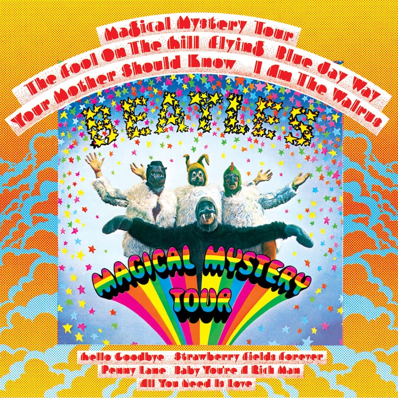 Aunque la versión cinematográfica de Magical Mystery Tour fue un fracaso, la banda sonora contenida en un EP doble los redimió. Antes que se comercializara Sgt. Pepper's Lonely Hearts Club Band, el cuarteto de Liverpool retornó al estudio para grabar Magical Mystery Tour, una especie de apología a la ironía y la irreverencia. Ese sinsentido se vislumbra desde la carátula: una colorida imagen donde la fauna beatle se fusiona con tipografías estrelladas y en forma de arcoíris. Aquí, el conjunto no emuló un santoral con figuras canónicas de la cultura pop, como lo había conceptualizado antes en Sgt. Pepper's. Más bien, rescató una fórmula ya probada: pensar la música como un collage.