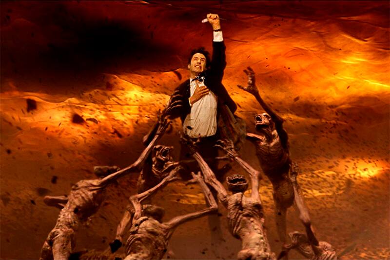 Lo que no es borroso y que puede llamar la atención a quien no esté familiarizado con el universo de John Constantine es la representación del tránsito a otros mundos, particularmente el infierno. Siempre con agua de por medio, ya sea ayudado por un gato o un golpe de corriente, los "viajes" del personaje interpretado por Keanu Reeves son recurrentes.