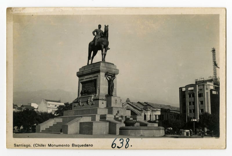 Por otra parte, la estatua del general Baquedano fue inaugurada en septiembre de 1928 junto con un conjunto de relieves y volúmenes que narran hazañas de la Guerra del Pacífico. Fue esculpida por el chileno Virginio Arias (1855-1941). El militar fue el comandante en jefe del ejército en campaña durante el conflicto que enfrentó a Chile con Perú y Bolivia, y tuvo el mando provisional del país en 1891, cuando el Presidente Balmaceda decidió refugiarse en la legación argentina tras su derrota en la guerra civil.
