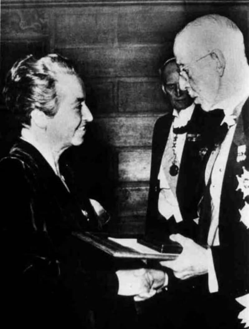 Y ahí, entre gente tan elegantemente vestida como ella, estaba Lucila Godoy, o más bien, Gabriela Mistral. La segunda galardonada con el Premio Nobel de Literatura tras el reinicio de su entrega. La primera latinoamericana, la segunda profesora (la primera fue la sueca Selma Lagerlöf, en 1909, autora del clásico El maravilloso viaje de Nils Holgersson).