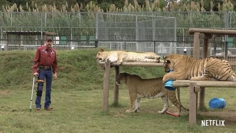 El protagonista de la serie, Tiger King, un redneck casado al mismo tiempo con otros dos hombres en la primera boda de tres cónyuges en Oklahoma, es propietario de un parque de cientos de grandes felinos atendido por una tropa de desadaptados y abierto al público: el Greater Wynnewood Exotic Animal Park.
