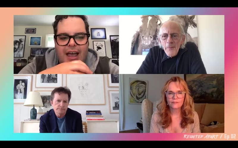 Christopher Lloyd y Michael J. Fox se vieron, a 30 años del final de la trilogía, por medio de una videollamada con Josh Gad. A medida que avanzó la conversación, se unieron a la convocatoria Lea Thomson (Lorraine), Mary Steenburgen (Clara), el director Robert Zemeckis, el guionista Bob Gale, el músico Huey Lewis, y el fanático declarado de la saga, JJ Abrams. Además de revelar datos inéditos de la producción, se refirieron al vínculo con Rick and Morty y presentaron un cover de "The power of love".