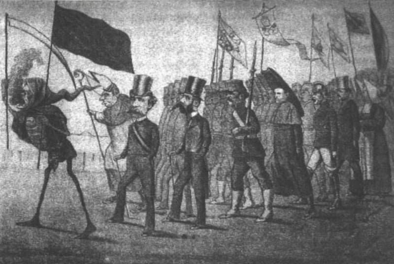 Políticos, militares, bomberos, eclesiásticos, enfermeras. Todos en un desfile. Una caricatura publicada en el periódico El Padre Padilla, de raigambre popular, resumió el espíritu de la época, en una frase que puede sonar coherente en cualquier tiempo: "¡Todos contra el cólera!", se tituló. Si se presta atención, quien encabeza la fila es el presidente José Manuel Balmaceda. "Era muy popular todavía", detalla Rafael Sagredo.