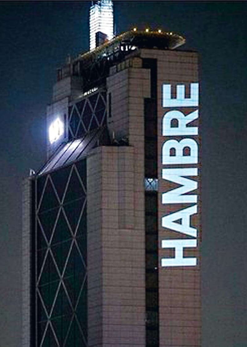 Sin embargo, una sola palabra, el lunes, invisibilizó los 11 años de trayectoria del colectivo que dirigen los hermanos Andrea y Octavio Gana, cuando proyectaron Hambre en la torre Telefónica.