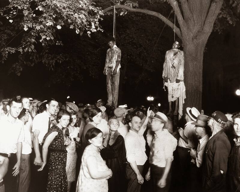 La oscura imagen fue capturada el 7 de agosto de 1930 por el fotógrafo Laurence Beitler en una cruda postal que pasaría a la historia de la música.