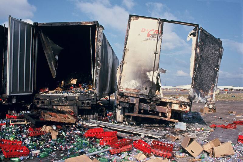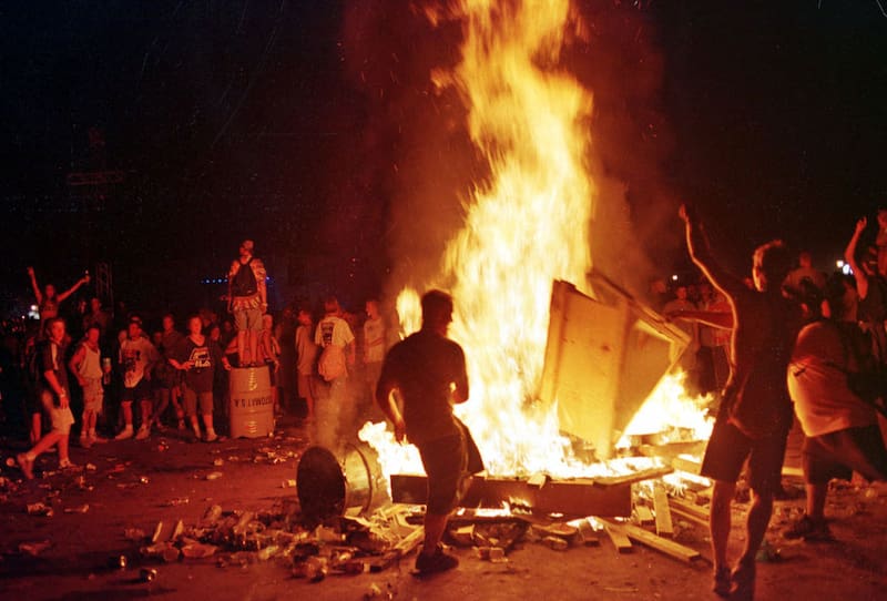 Ya con RHCP fuera de escena, el incendio del público aumentó: no solo las llamas eran parte del panorama, sino también comenzaron los saqueos y la destrucción de camiones que eran de la organización.