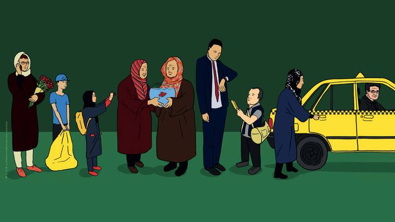 Esa es la Teherán que podemos ver nosotros, pasajeros en el taxi de Pahani, desde las ventanas de ese auto que se mueve y atraviesa calles y avenidas. ¿Qué vemos? Una ciudad extrañamente parecida a nuestras ciudades latinoamericanas: edificios altos e informes de los años ochenta, avenidas con pequeños negocios, locales de comida rápida, autos de hace diez años, un arbolado similar, un mobiliario urbano que se asemeja demasiado al nuestro. ¿Qué vemos, sin embargo, de distinto, de radicalmente distinto, de insoportablemente distinto? Las mujeres con el velo que les cubre sus cabezas, vestidas de negro, como si deambularan por una ciudad en luto; son el punto que captura la mirada, un imán. Lo que hiere.