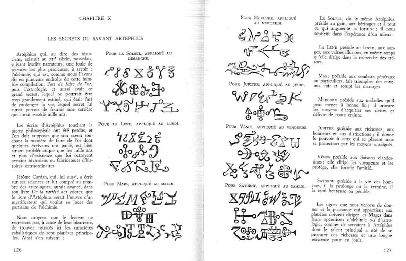 En el capítulo 91 (XCI) llamado "Ars magica Artefii et Mihinii" se detalla el simbolismo asignado a cada planeta, mismo trabajo recopilado en El diccionario de ocultismo, hermetismo y signos alquimistas (1981) de Fred Gettings, en la sección "Símbolos planetarios".