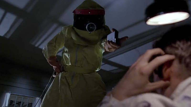 George duerme plácidamente tras leer una de sus historias de robots y viajes en el espacio. Marty entra a su habitación vistiendo un traje radioactivo que cubre todo su cuerpo y rostro, tiene un secador de pelo a modo de ‘arma’ y para despertar a George no encontró nada mejor que su walkman y un cassette que dice Van Halen.