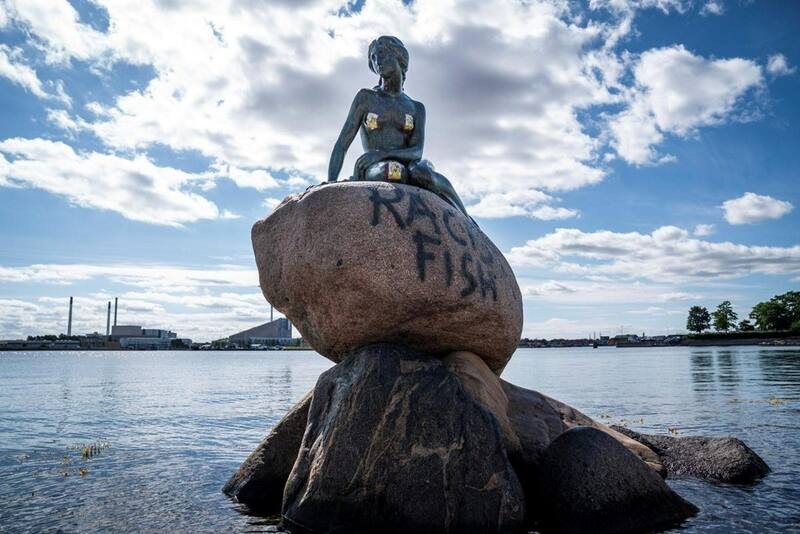 “Pez racista”. Con este fuerte mensaje, escrito sobre la base de la estatua de La Sirenita en un muelle de Copenhague, amaneció Dinamarca.