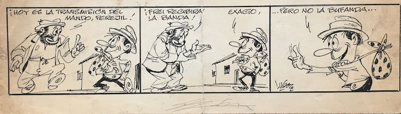 El investigador describe, además, al personaje más célebre del recién fallecido dibujante: Perejil. “Era un vago que odiaba que le ofrecieran trabajo y bañarse, no era un roto chileno, sino lumpen, le cargaba la política. Sin embargo, con la polarización de los años 60 y 70, Lugoze se abanderiza muchísimo con la extrema derecha e incluso politiza a Perejil, y deja el humor picaresco que lo caracterizaba”, dice.