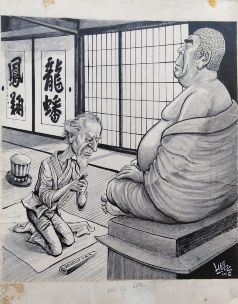 Montealegre profundiza en este tema: “Lugoze tuvo un protagonismo muy grande durante la campaña del terror contra Salvador Allende. Envía, desde Estados Unidos, sus colaboraciones para la revista La palmada en la frente, que se regaló en miles de ejemplares, y después, ya en dictadura, trabaja en las revistas Sepa y Negro en el blanco”.