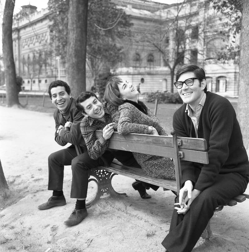 "Con ellos hice cuatro o cinco fotos y solo en dos están sentados en el banco: una en que están serios y esa en que están riendo. Si mal no recuerdo, correspondió a un chiste que hizo Víctor, que de repente era muy palomilla. Hizo una broma porque vio que estaban todos muy tiesos. Es una situación imposible de repetir, es absolutamente espontánea. Después sacamos otras fotos apoyados en el muro del Museo de Bellas Artes, pero no se usaron. Yo tenía una cámara que sacaba 12 fotos con negativo cuadrado, el rollo era muy caro, así que sacaba pocas fotos".