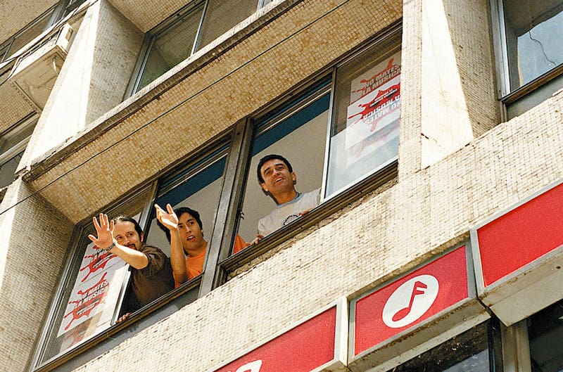 Si las imágenes de los discos en vivo más importantes de Los Jaivas y Los Tres fueron filmadas fuera de Chile —entre las ruinas de la civilización inca y en un plató de televisión en Miami—, Lo estamos pasando muy bien (Warner, 2002), el registro de Los Prisioneros hilvanado por la documentalista Carmen Luz Parot muestra un maremágnum de gente en el coliseo que vio brillar a la generación dorada del fútbol chileno y que más vergüenza y temor significó en el pasado.