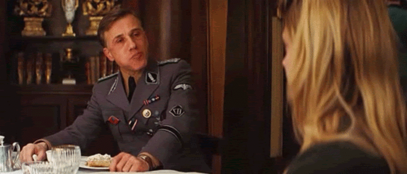 Durante el encuentro, Landa le recomienda a Shosanna que pruebe el strudel de manzana, el que califica como “no terrible”. Si el coronel nazi hubiese sabido que Shosanna era en realidad judía, que Marcel era su pareja, y que elaboró un explosivo plan en su contra; lo más probable es que no hubiesen compartido tal postre alemán.