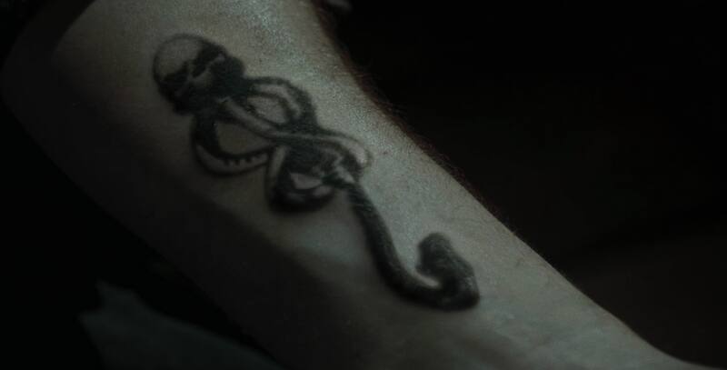 La "Marca Tenebrosa", el tatuaje de una calavera que escupe una serpiente, permitía identificar fácilmente a los mortífagos o ex mortífagos. La esvástica nazi, en cambio, sufrió una transformación, pues originalmente tenía una connotación positiva en la religión budista, pero en 1920 fue adoptado por los nazis como ícono de la "raza aria".