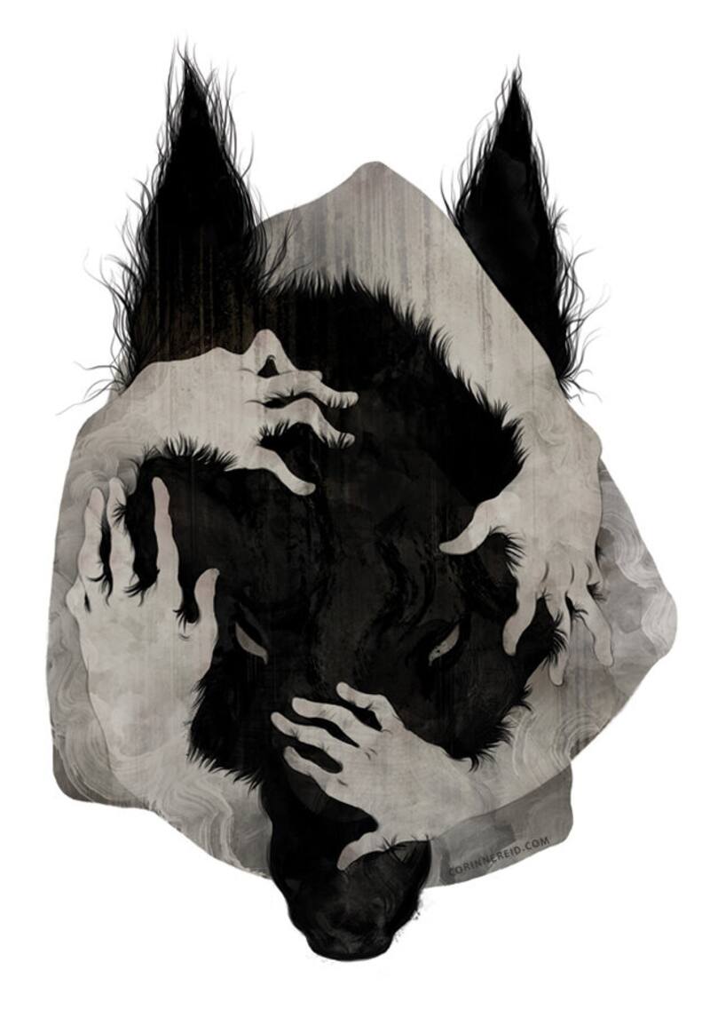 “Wild dog” es el nombre del diseño creado por Corinne, el que fue publicado como la portada del libro In the house in the dark of the woods de Laird Hunt en octubre de 2018. “Definitivamente lo llamaría un favorito de los fanáticos”, dice la artista a Culto.