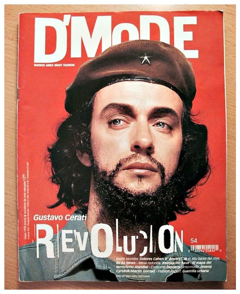 Con barba, usando una boina colorada y con un rojo encendido de fondo; el cantautor argentino posó en 1998 para la revista D'Mode vestido como el guerrillero comunista. Para él y la fotógrafa Gaby Herbstein -quien lo retrataría al año siguiente para Bocanada-, fue como un juego, "un desafío actoral", más que una declaración política.
