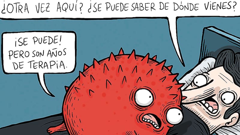 El ilustrador reúne más de 100 viñetas sobre las inquietudes cotidianas con un asediante “bicho rojo” como protagonista.