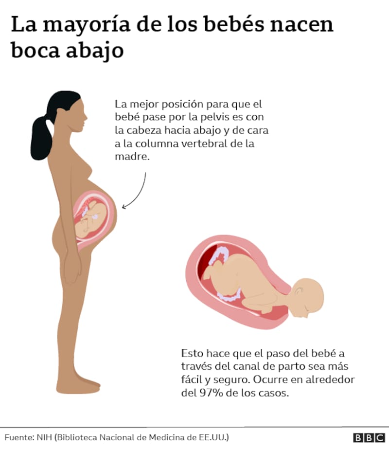Antes de nacer, más del 90% se coloca en posición cefálica, es decir, cabeza abajo, con la barbilla apoyada en su pecho, con piernas y brazos flexionados. “La posición más natural al nacer es que los bebés estén mirando hacia abajo o un poquito hacia un lado”, explicó Dexeus a BBC.