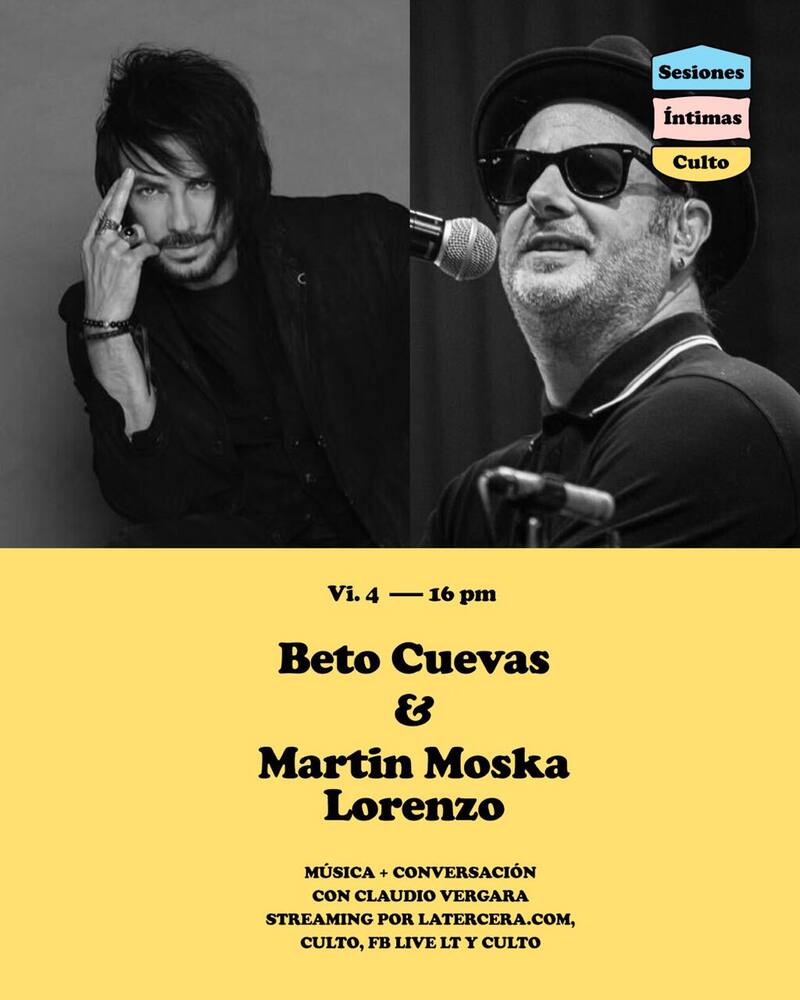 Cuevas junto a Martín “Moska” Lorenzo, uno de los integrantes de Los Auténticos Decadentes, estuvo en Sesiones íntimas de Culto, el espacio de música y conversación que se emite a través del Facebook y la web de La Tercera y Culto.