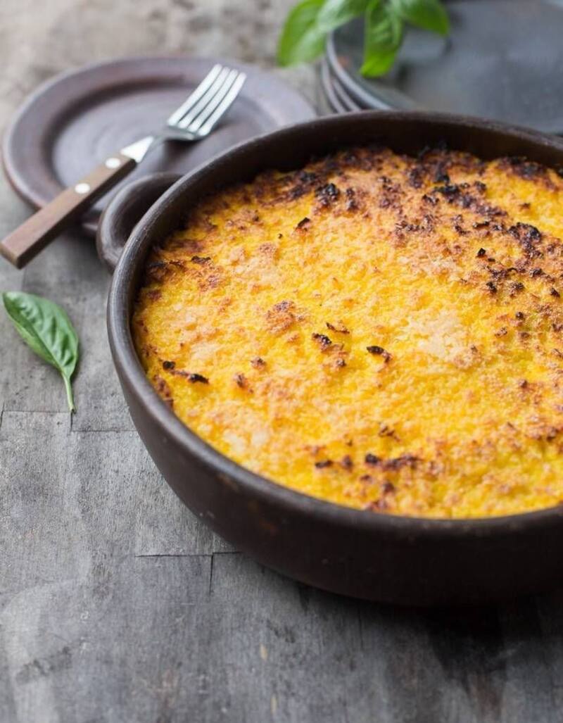 Se aceitan seis platillos de greda individual, en su interior se ponen cuatro cucharadas colmadas de pino con ají, una presa de pollo asado y deshuesado, y tajadas de huevo duro. Se cubre con una capa de choclo de dos a tres centímetros. Se espolvorea con azúcar granulada y se pone al horno bien caliente, con llama alta, hasta que el azúcar comience a caramelizar.