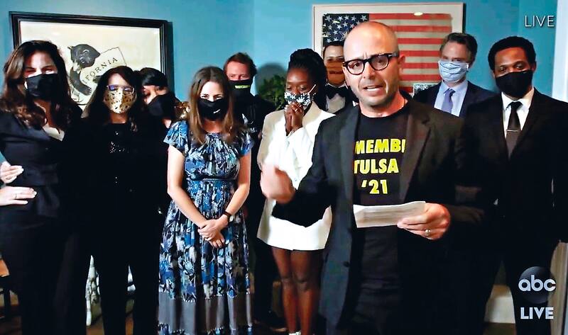 Sin ser afroamericano -pero estrechamente involucrado a la crítica a la segregación racial luego de su última producción-, el creador de Watchmen, Damon Lindelof, recibió sus premios con una polera que recordaba la masacre de Tulsa en 1921 (con la que comienza la serie que adapta la novela gráfica) y dedicó el galardón principal a los sobrevivientes del hecho, uno de los sucesos más sangrientos y violentos de la historia de Estados Unidos.