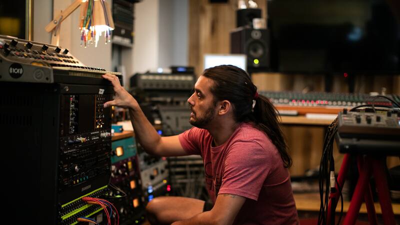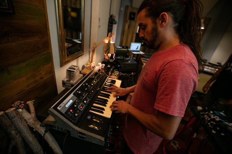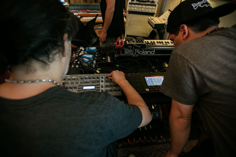 “Siempre nos han llamado los sintetizadores, como dice Carlitos los hemos integrado en nuestra música desde Comenzará de nuevo (2012), pero esta vez hicimos todo con ellos”, detalla Metraca, “Seba toca los bajos en el Korg MS-20 y el Moog Taurus, Gallardo el Roland RS-202 y yo programé las baterías en la MPC”.