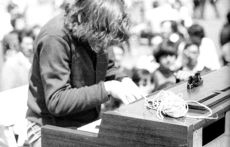 Hacia las 18.00, al caer la tarde suave y amarilla por los faldeos cordilleranos, llegó el turno de Los Jaivas (anunciados en el cartel como los High Bass, pero desde mayo de ese año ya tenían su nombre actual). Por entonces, la agrupación estaba inmersa en la búsqueda de un sonido alejado del formato canción, lanzándose en largas jams e improvisaciones. “Estábamos en el proceso de descubrir el lenguaje de Los Jaivas”, explica Mario Mutis.