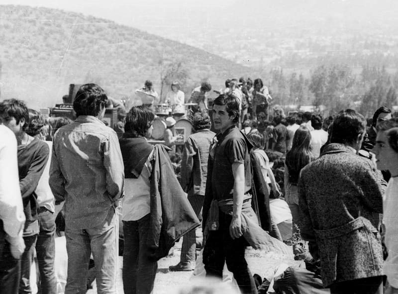 La tarde del viernes 9 de octubre, un grupo de los organizadores subió hasta los faldeos de la cordillera para instalar los precarios equipos de amplificación y un pequeño escenario facilitado por la Coca Cola. “Yo creo que tenía un metro de altura, y no más de cuatro por cuatro, o sea, no era nada”, detalla Anrique.