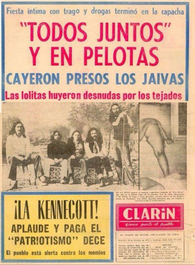 Y al respecto, rememora el episodio cuando el Clarín (“Firme junto al pueblo”) los puso en portada con un infame titular, tras la detención de “Gato” Alquinta y Gabriel Parra en un allanamiento de una casa de Bellavista en la que se encontraban de visita. “El escándalo de ‘Todos Juntos y en pelotas’, nos puso muy mal frente a una parte de los santiaguinos, recuerdo que después de ese escándalo tuvimos que soportar varias degradaciones y hasta ciertos escupos de algunas señoras que se tragaron esa historia como el diario Clarín la pintó”.
